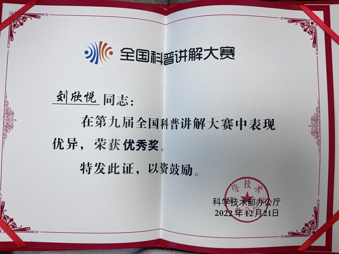 喜訊 | 我公司科技質(zhì)量部劉欣悅榮獲第九屆全國科普講解大賽優(yōu)秀